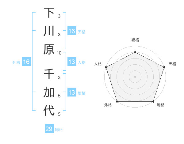 下川原 千加代さんを姓名の画数から五運を鑑定