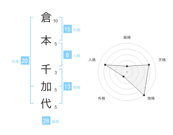 倉本 千加代さんを姓名の画数から五運を鑑定