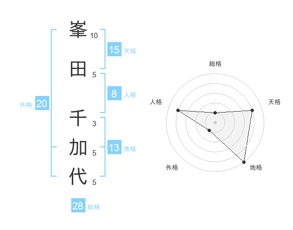 峯田 千加代さんを姓名の画数から五運を鑑定