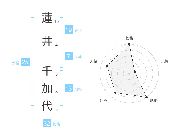 蓮井 千加代さんを姓名の画数から五運を鑑定