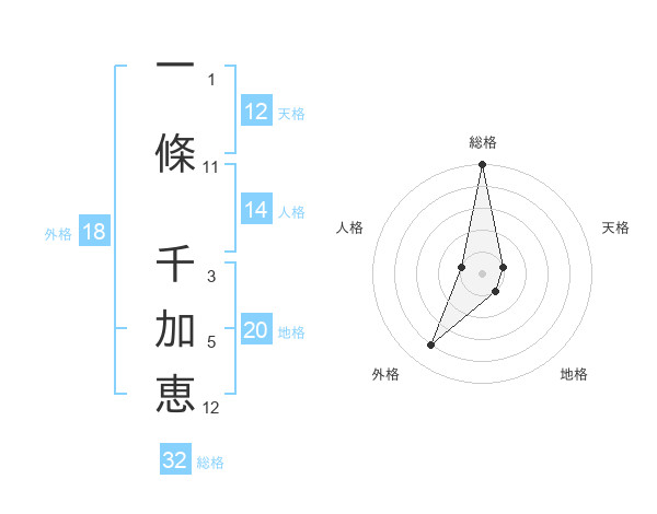 一條 千加恵さんを姓名の画数から五運を鑑定