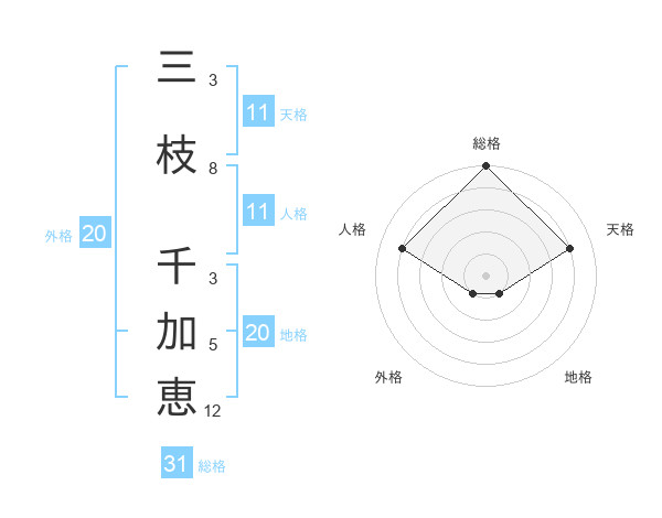 三枝 千加恵さんの天格は11画の4点!