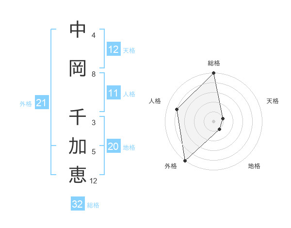 中岡 千加恵さんの外格は21画の5点!
