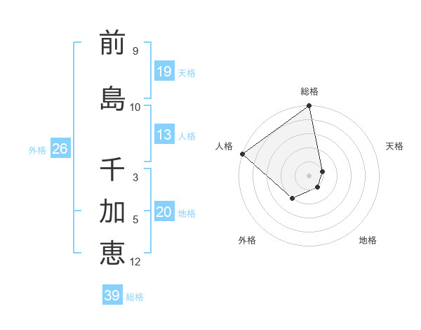 前島 千加恵さんを姓名の画数から五運を鑑定