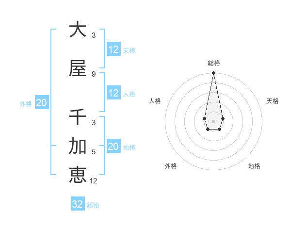 大屋 千加恵さんを姓名の画数から五運を鑑定