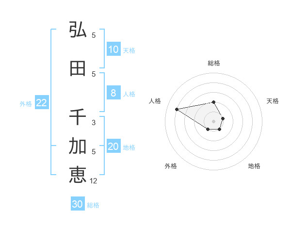 弘田 千加恵さんを姓名の画数から五運を鑑定