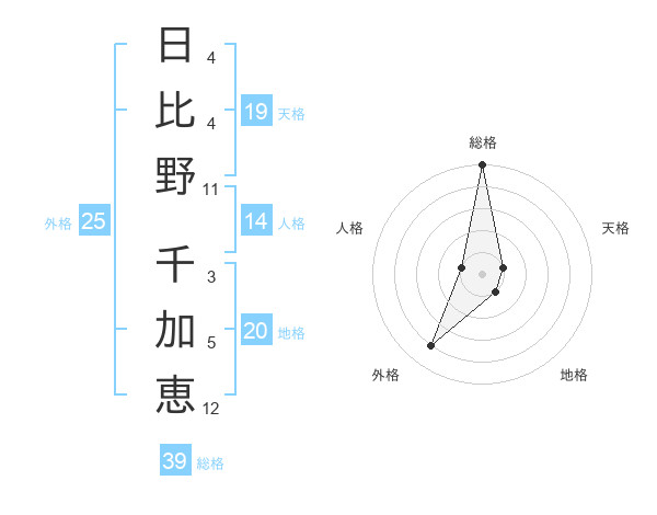 日比野 千加恵さんを姓名の画数から五運を鑑定