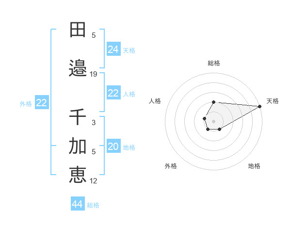 田邉 千加恵さんを姓名の画数から五運を鑑定