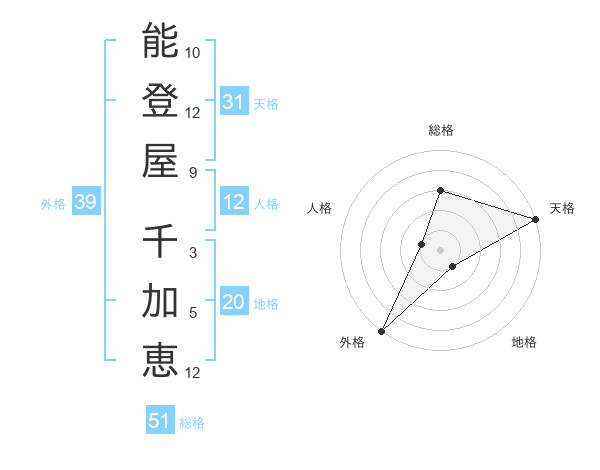 能登屋 千加恵さんの総格は51画の3点!