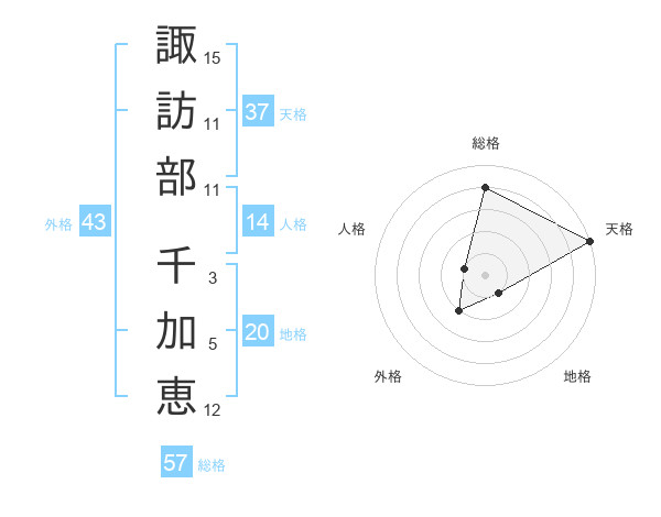 諏訪部 千加恵さんを姓名の画数から五運を鑑定