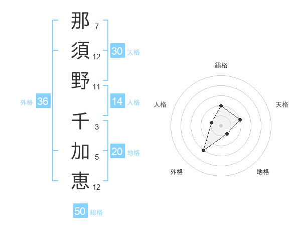 那須野 千加恵さんを姓名の画数から五運を鑑定