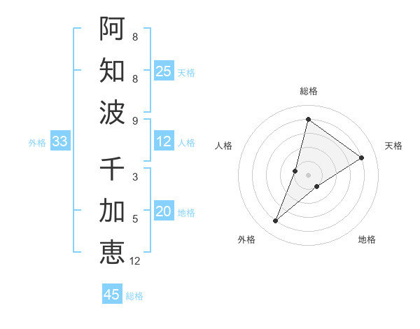 阿知波 千加恵さんの総格は45画の4点!