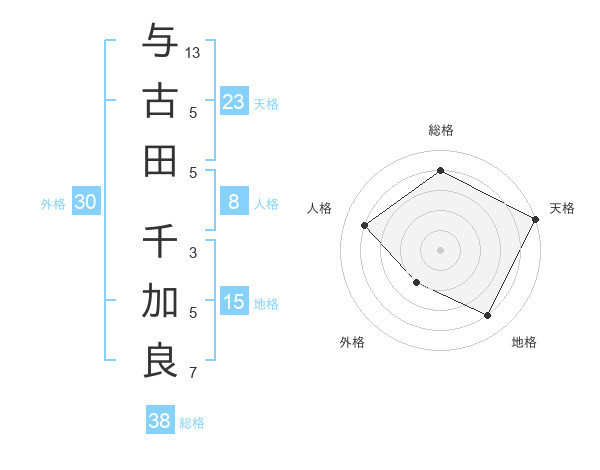 与古田 千加良さんを姓名の画数から五運を鑑定