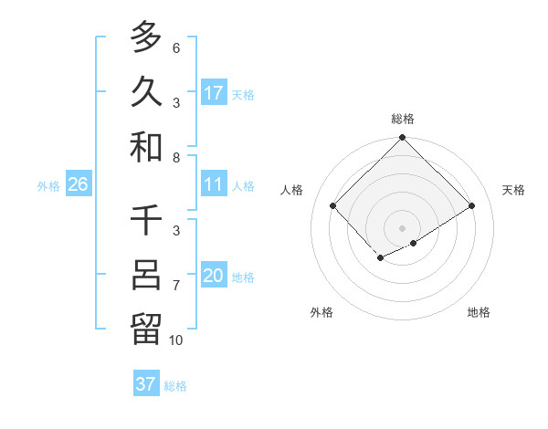 多久和 千呂留さんを姓名の画数から五運を鑑定