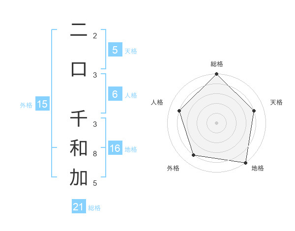 二口 千和加さんの総格は21画の5点!