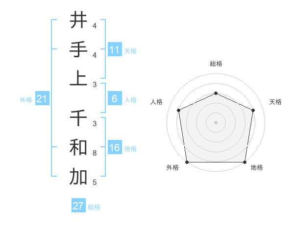 井手上 千和加さんを姓名の画数から五運を鑑定