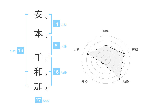 安本 千和加さんの天格は11画の4点!