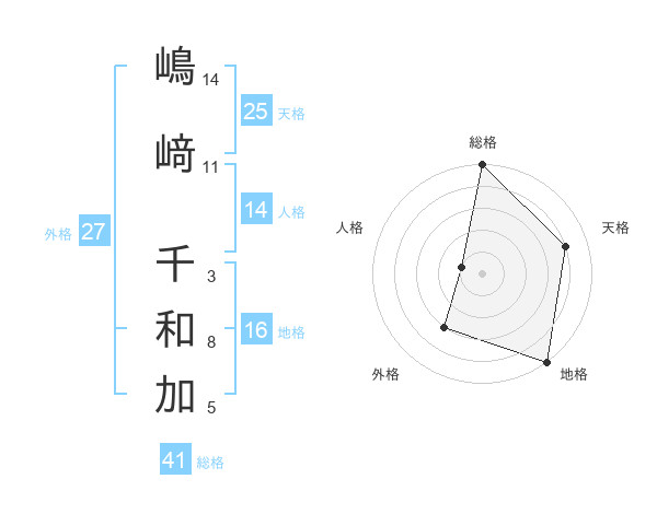 嶋﨑 千和加さんの天格は25画の4点!