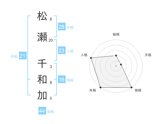 松瀬 千和加さんを姓名の画数から五運を鑑定