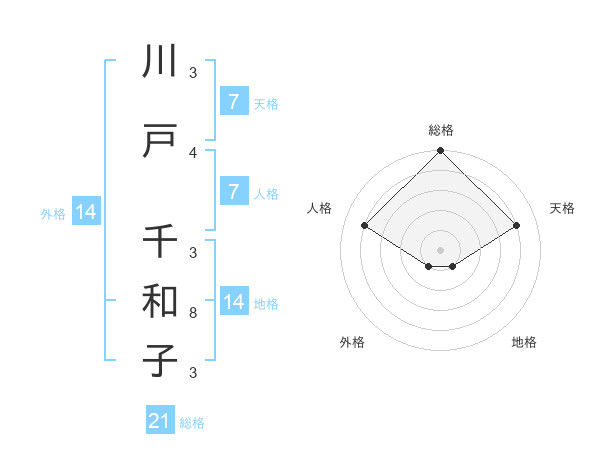 川戸 千和子さんを姓名の画数から五運を鑑定