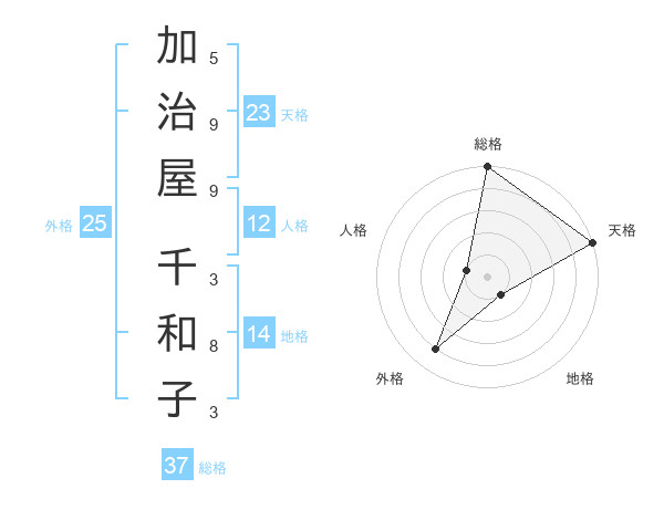 加治屋 千和子さんを姓名の画数から五運を鑑定