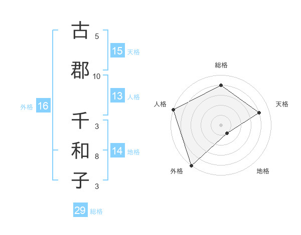 古郡 千和子さんの総格は29画の4点!
