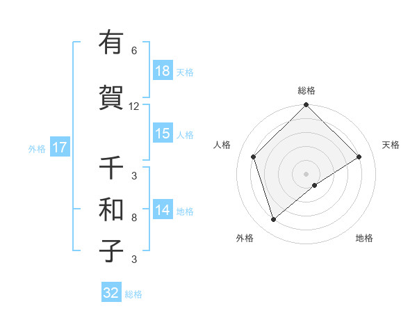 有賀 千和子さんを姓名の画数から五運を鑑定