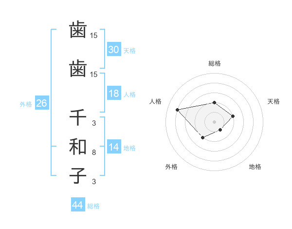 歯歯 千和子さんを姓名の画数から五運を鑑定