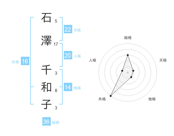 石澤 千和子さんを姓名の画数から五運を鑑定