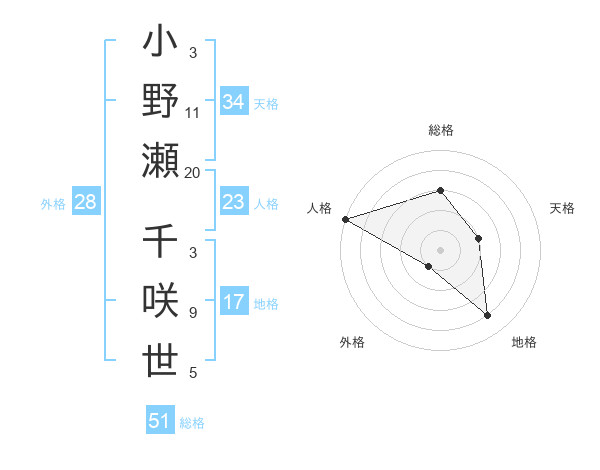 小野瀬 千咲世さんを姓名の画数から五運を鑑定