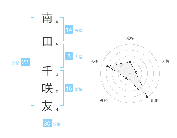 南田 千咲友さんを姓名の画数から五運を鑑定