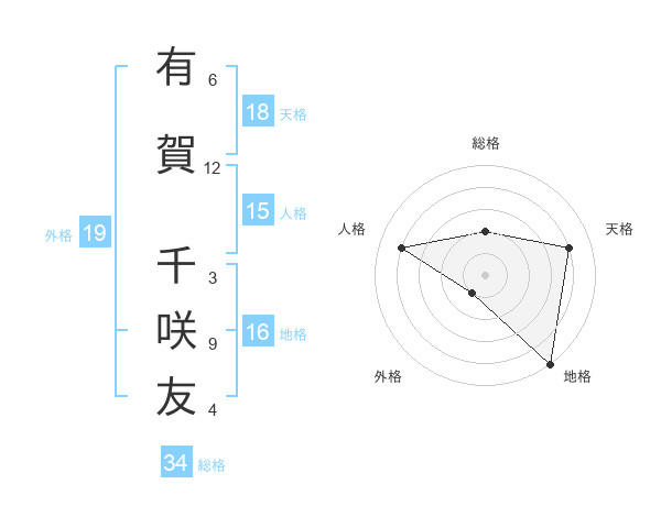 有賀 千咲友さんを姓名の画数から五運を鑑定