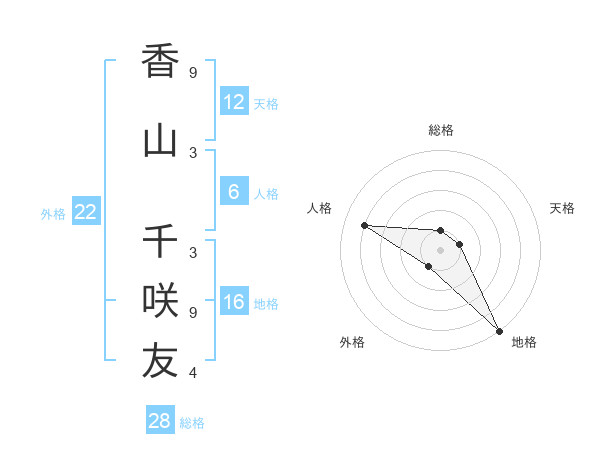 香山 千咲友さんを姓名の画数から五運を鑑定