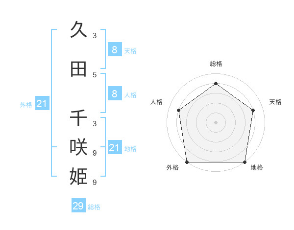 久田 千咲姫さんを姓名の画数から五運を鑑定