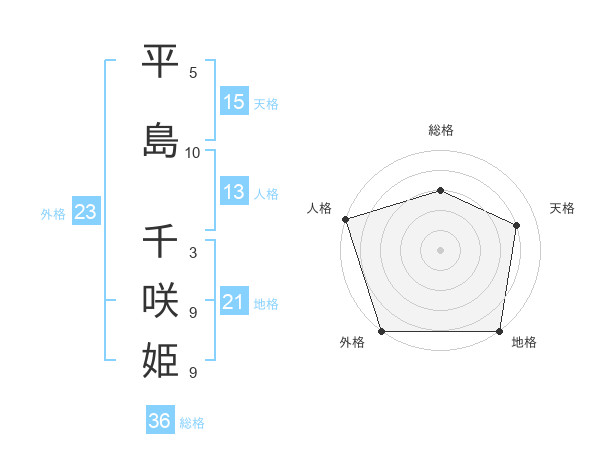 平島 千咲姫さんを姓名の画数から五運を鑑定