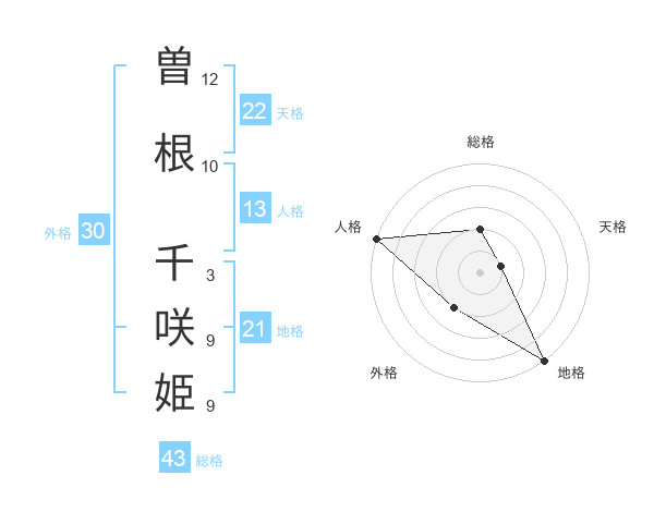 曽根 千咲姫さんを姓名の画数から五運を鑑定