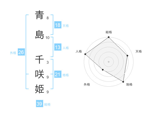 青島 千咲姫さんを姓名の画数から五運を鑑定