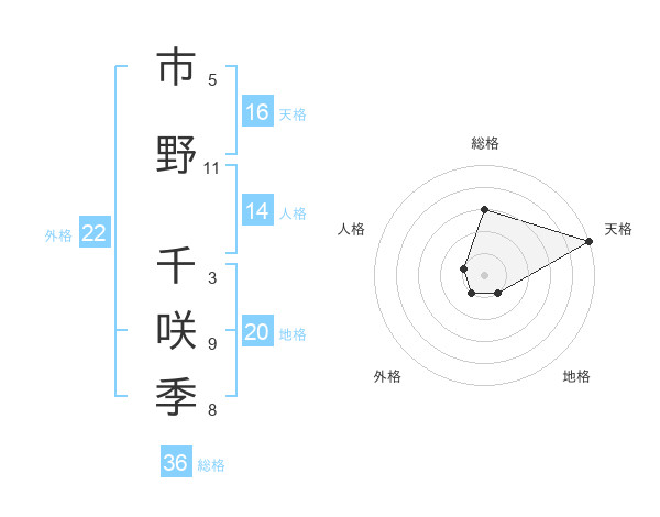 市野 千咲季さんを姓名の画数から五運を鑑定