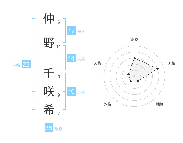 仲野 千咲希さんを姓名の画数から五運を鑑定