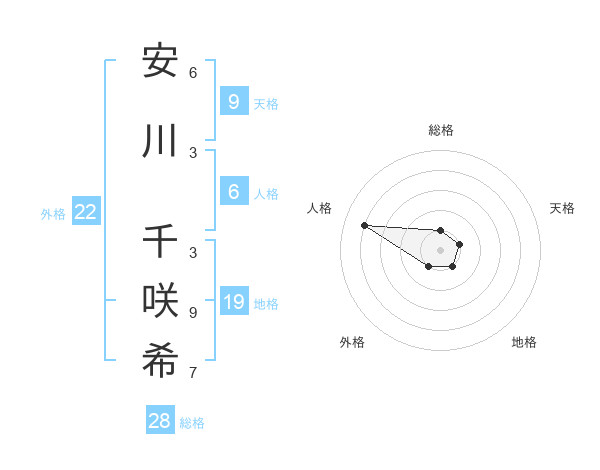安川 千咲希さんを姓名の画数から五運を鑑定
