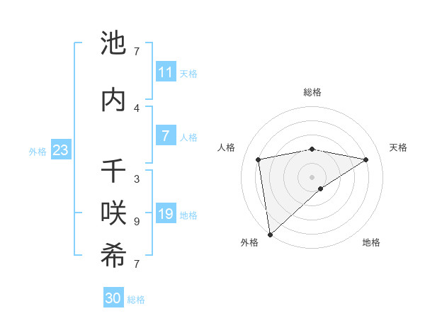 池内 千咲希さんを姓名の画数から五運を鑑定