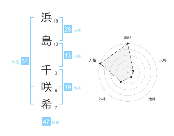 浜島 千咲希さんの総格は47画の5点