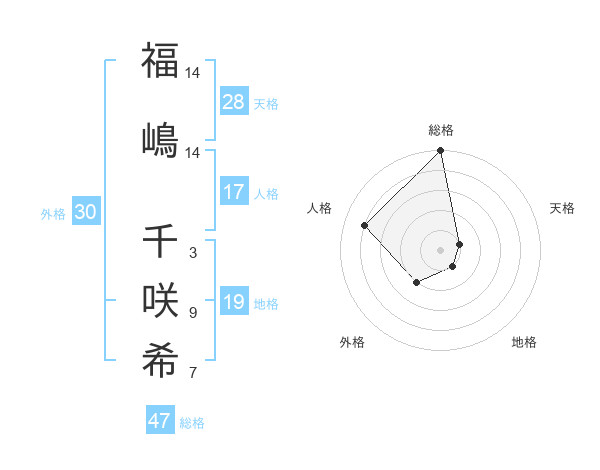 福嶋 千咲希さんを姓名の画数から五運を鑑定