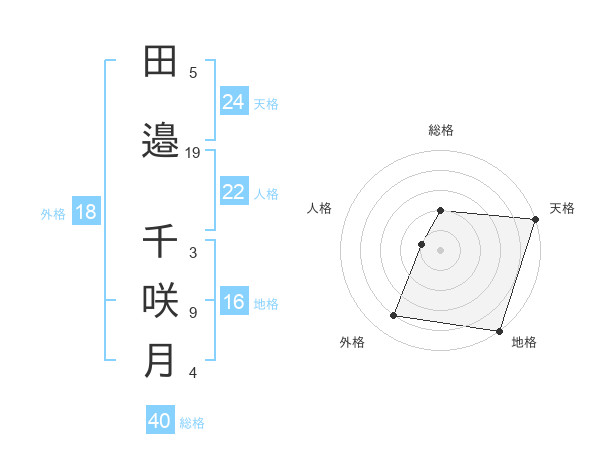 田邉 千咲月さんを姓名の画数から五運を鑑定