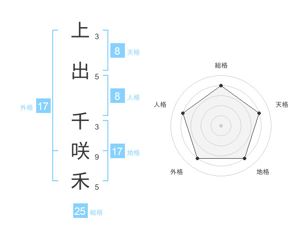 上出 千咲禾さんの総格は25画の4点!