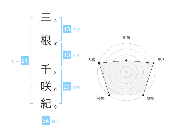 三根 千咲紀さんを姓名の画数から五運を鑑定