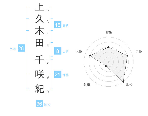 上久木田 千咲紀さんを姓名の画数から五運を鑑定