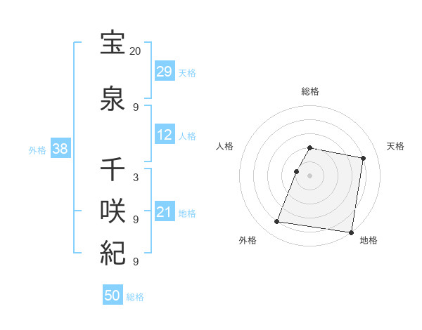 宝泉 千咲紀さんを姓名の画数から五運を鑑定