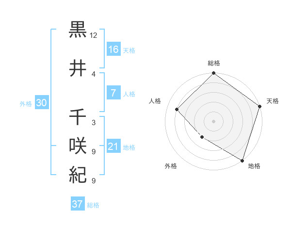 黒井 千咲紀さんを姓名の画数から五運を鑑定