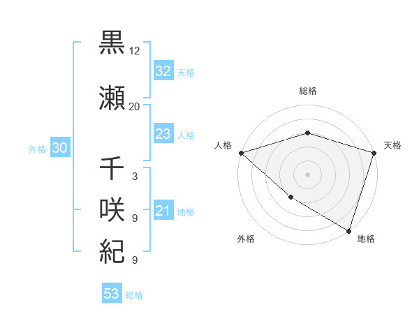 黒瀬 千咲紀さんを姓名の画数から五運を鑑定